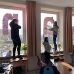 Auch die Schülerinnen und Schüler der Comeniusschulen zeigen ihre Solidarität und gestalten das Schulhaus mit Friedenstauben. Die Klasse 9aG organisierte eine Aktion, bei der jede Klasse einen Buchstaben gestalten sollte. Zusammen ergeben die Buchstaben nun den Slogan "GIVE PEACE A CHANCE".