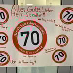 Am Mittwoch, den 12.01 feierte unser ehemaliger Konrektor Roland Stadler seinen 70. Geburtstag. Überrascht wurde er mit zahlreichen Plakaten und Glückwünschen, die von den Klassen gestaltet und im gesamten Schulhaus aufgehängt wurden.