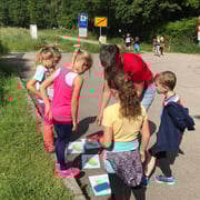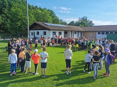 Am 27. Mai erkundeten die SchülerInnen der Grundschule im Rahmen eines Orientierungslaufs das Gelände des Sportplatzes am Harter Weg und das sich anschließende Waldstück. Im Sternlauf hatten die Kinder 6 Posten anzulaufen, dort ein Puzzle zu lösen und das erkannte Tier auf ihrer Laufkarte einzutragen. So kamen die Gruppen immer wieder zurück zum Start, erholten sich beim Spielen oder Pause machen und füllten mit der Zeit so ihre Laufkarte aus.