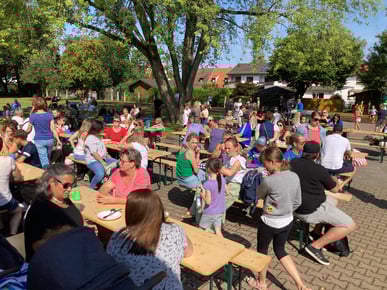 Bei einem entspannten Frühstückspicknick stimmten sich Eltern, Schüler und Lehrer der Comeniusschulen auf einen aktionsreichen Vormittag auf dem Pausengelände der Grund- und Mittelschule am Harter Weg ein. In alleiniger Verantwortung organisierte der gemeinsame Elternbeirat unter Führung der Vorsitzenden Julia Naujoks und Sabrina Poida für die Schülerinnen und Schüler ein Sommerfest mit Mitmachstationen wie u.a. Seilhüpfen, Dosenwerfen, einer Kegelbahn oder einer Schminkstation. Unterstützung fanden die Eltern bei den Vorbereitungen bei der Freiwilligen Feuerwehr Töging sowie dem THW. Das Besondere Highlight des Tages war der Auftritt der eigens für das Sommerfest ins Leben gerufenen Tanzgruppe, die mit einem von der ukrainischen Lehrerin Olena Fedorova und der Sportfachlehrerin Sharina Laggerbauer eintrainierten,
