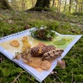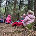 Im Wald konnten die Kinder aus Naturmaterialien Buchstaben legen und Mengen bis 5 bündeln. Außerdem wurden sie als Naturkünstler und -Künstlerinnen aktiv.