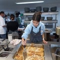Die Mensa der Schule wurde in eine kleine Backstube verwandelt und schon ging es los.