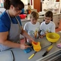 Mit den vorbereiteten Teigen, durch die Eltern und Lehrkräfte, konnten die Kinder gleich starten.