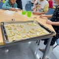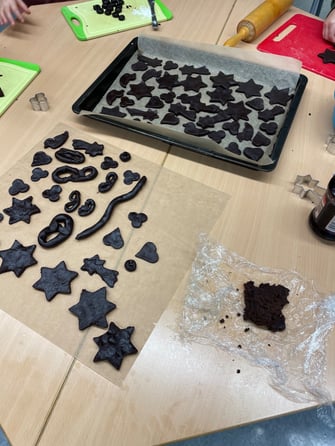 Fleißig wurde in Kleingruppen Teig geknetet, ausgerollt und ausgestochen.