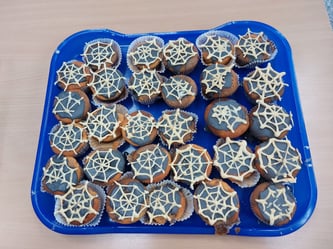 Im Oktober haben sich die Schülerinnen und Schüler anlässlich des bevorstehenden Halloween-Festes etwas ganz Besonderes überlegt: Die kleinen Kuchen waren passend mit Spinnennetzen, Gebissen und anderen gruseligen Leckereien dekoriert.