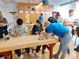 Am 16. April 2024 hatte die Klasse 8bM das Vergnügen, mit ODU-Mitarbeitern einen Mini-Ventilator aus Aluminium zu bauen. Der Lehrlingsausbilder Herr Finster wurde dabei von vier seiner Auszubildenden begleitet und unterstützt. Es war ein spannendes und lehrreiches Erlebnis, das nicht nur die handwerklichen Fähigkeiten verbesserte, sondern uns auch einen tiefen Einblick in die Welt der Technik lieferte. Der Vormittag verging wie im Flug und tatsächlich gelang es jedem von uns, einen funktionierenden Ventilator herzustellen. Vielen Dank an die Firma ODU für diesen tollen Vormittag. Wer weiß, vielleicht sieht man sich ja in der Ausbildung bei ODU wieder….!