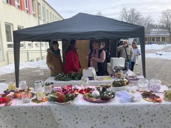 Zu Gunsten der Schule verkaufte der Elternbeirat traditionell Kinderpunsch und Waffeln vor dem Schulgebäude. Auch Basteleien der Grundschule gab´s zu kaufen.