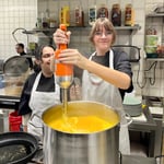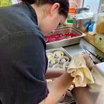 Schnell wurde klar, worauf in der Einkehr zum Müllerbräu Wert gelegt wird: frische, regionale Produkte und Fleischerzeugnisse, absolute Einhaltung der hygienischen Bestimmungen, aber auch ein Arbeitsklima, bei dem sich jeder wohl fühlt. Daher war das Eis bei den Schülern im Nu gebrochen und schnell wurden die Anweisungen und Anleitungen der Profis in die Tat umgesetzt.