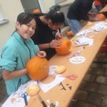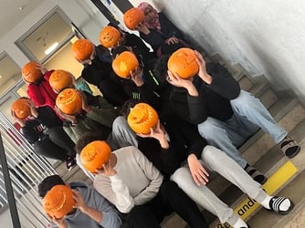 Zuerst haben wir die Kürbisse ausgehöhlt – das war für manche gar nicht so einfach, weil der Kürbis von innen doch härter war, als wir dachten! Danach zeigte uns Herr Klemisch verschiedene Techniken, wie man Gesichter oder Muster in den Kürbis schnitzen kann. Einige von uns entschieden sich für gruselige Motive, andere für lustige Gesichter oder sogar Tiere. Es war beeindruckend zu sehen, wie unterschiedlich und kreativ die Ergebnisse am Ende waren. Natürlich kam auch der Spaß nicht zu kurz. Wir haben zusammen gelacht, uns gegenseitig geholfen und die Zeit sehr genossen. Dank der großzügigen Sponsoring von Thomas Reichenspurner, der uns die Kürbisse zur Verfügung gestellt hat, konnten wir dieses besondere Projekt umsetzen. Ohne diese Unterstützung wäre der Tag so nicht möglich gewesen. Dafür möchten wir uns ganz herzlich bei ihm bedanken! Es war ein wunderbarer Tag voller Kreativität und Teamarbeit. Wir alle hatten großen Spaß und freuen uns schon auf das nächste gemeinsame Projekt!