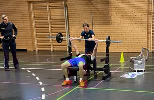 An zwei Tagen im Januar fand in der Schule ein Schnuppertag der Polizei für den Einstellungstest im Bereich Sport statt. Die Schülerinnen und Schüler der Jahrgangsstufen 9 und 10 hatten die Möglichkeit, sich mit den verschiedenen Disziplinen vertraut zu machen, die im Rahmen des Sporttests gefordert werden. Dazu gehörten Bankdrücken, Pendellauf, das Springen über eine Kleinbank sowie der 12-Minuten-Cooper-Test. Diese Tests dienen dazu, die körperliche Fitness der Teilnehmer zu überprüfen und sind ein wichtiger Bestandteil des Auswalverfahrens für die Polizei. Der Schnuppertag bot den Jugendlichen die Gelegenheit, einen Eindruck von den Anforderungen des Einstellungstests zu gewinnen und sich auf die bevorstehenden Herausforderungen vorzubereiten. Die Mittelschüler waren trotz der Anstrengung überaus motiviert und hatten sehr viel Spaß an den Aktivitäten.